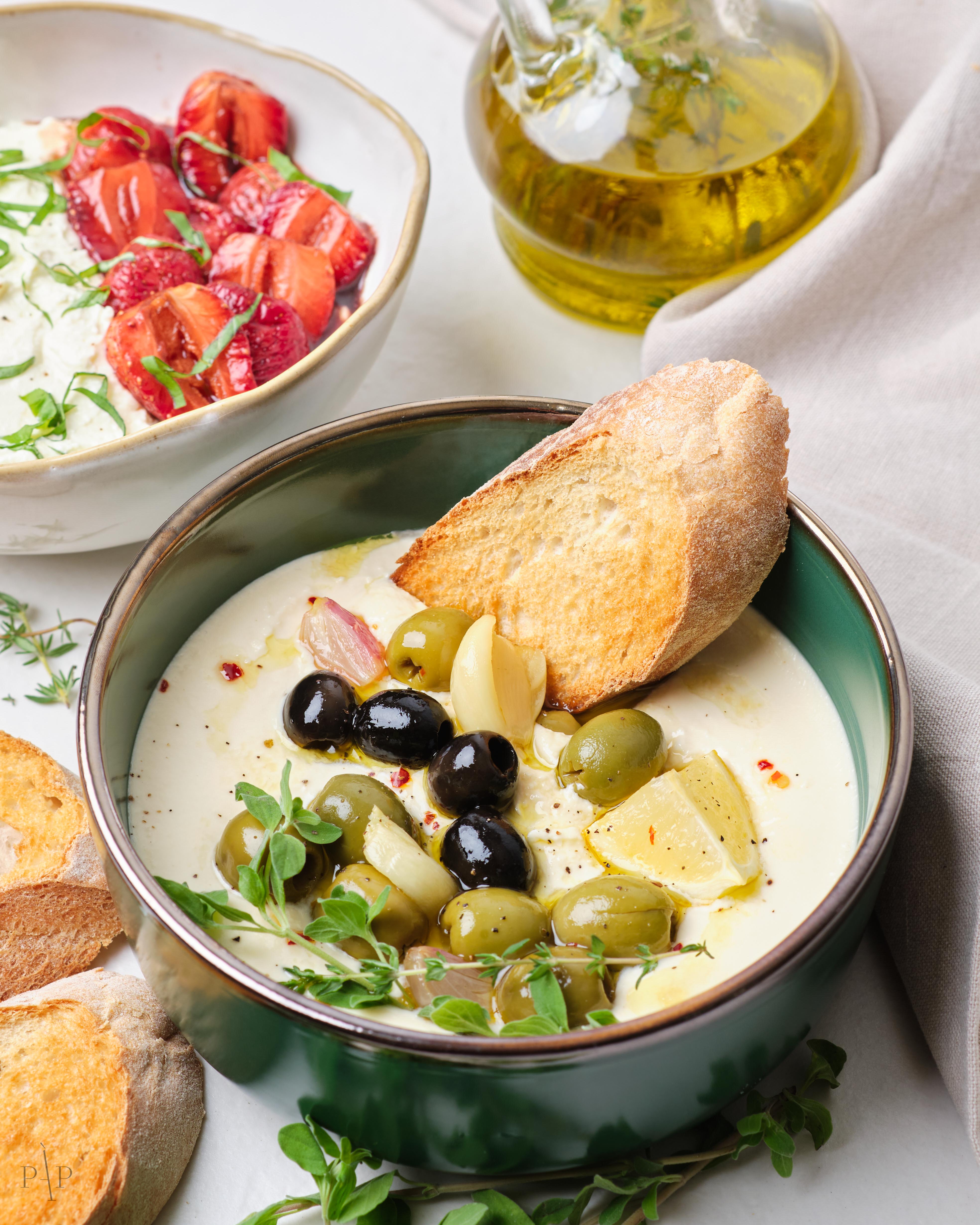 Honey Whipped Feta with Garlic Herb Roasted Olives