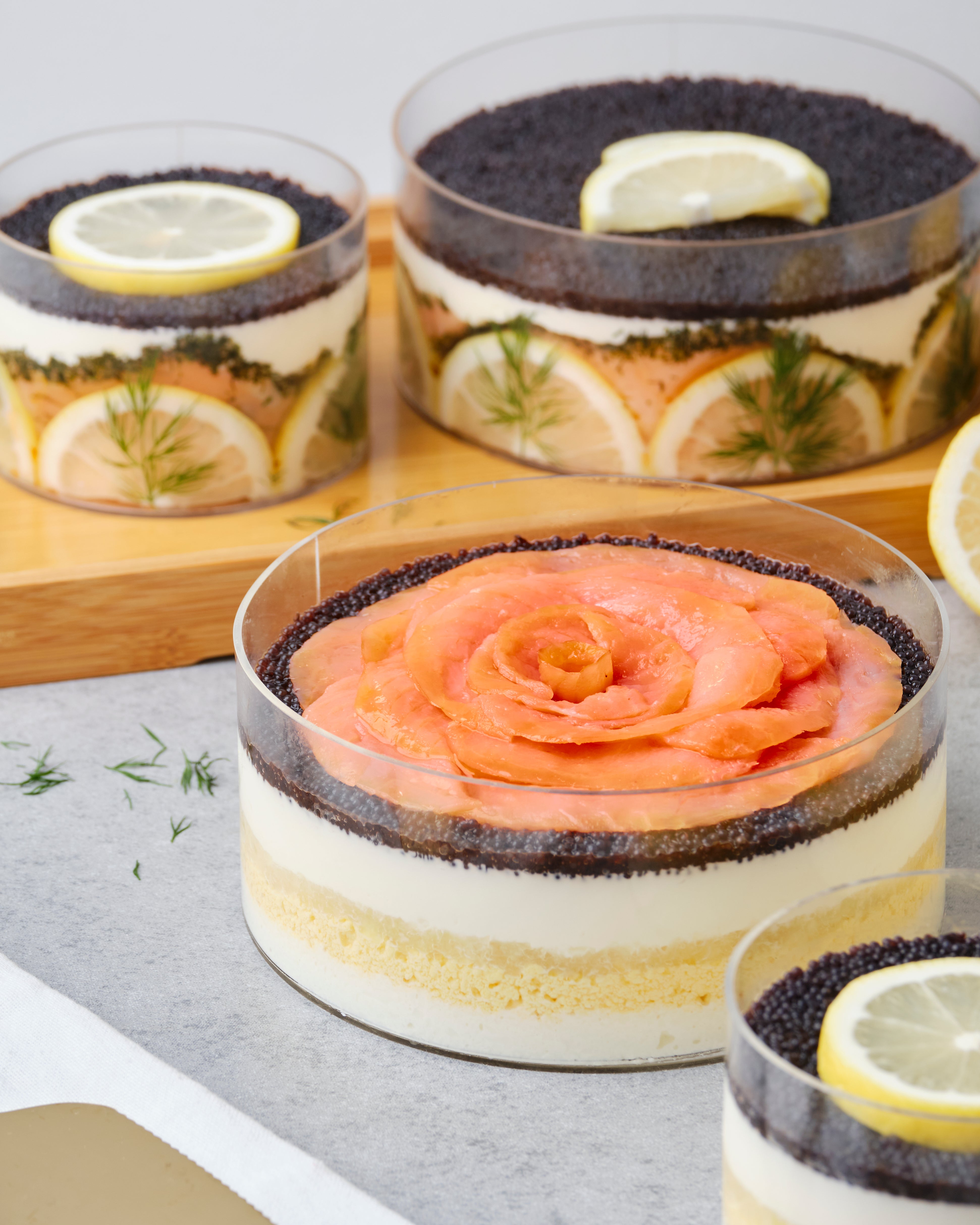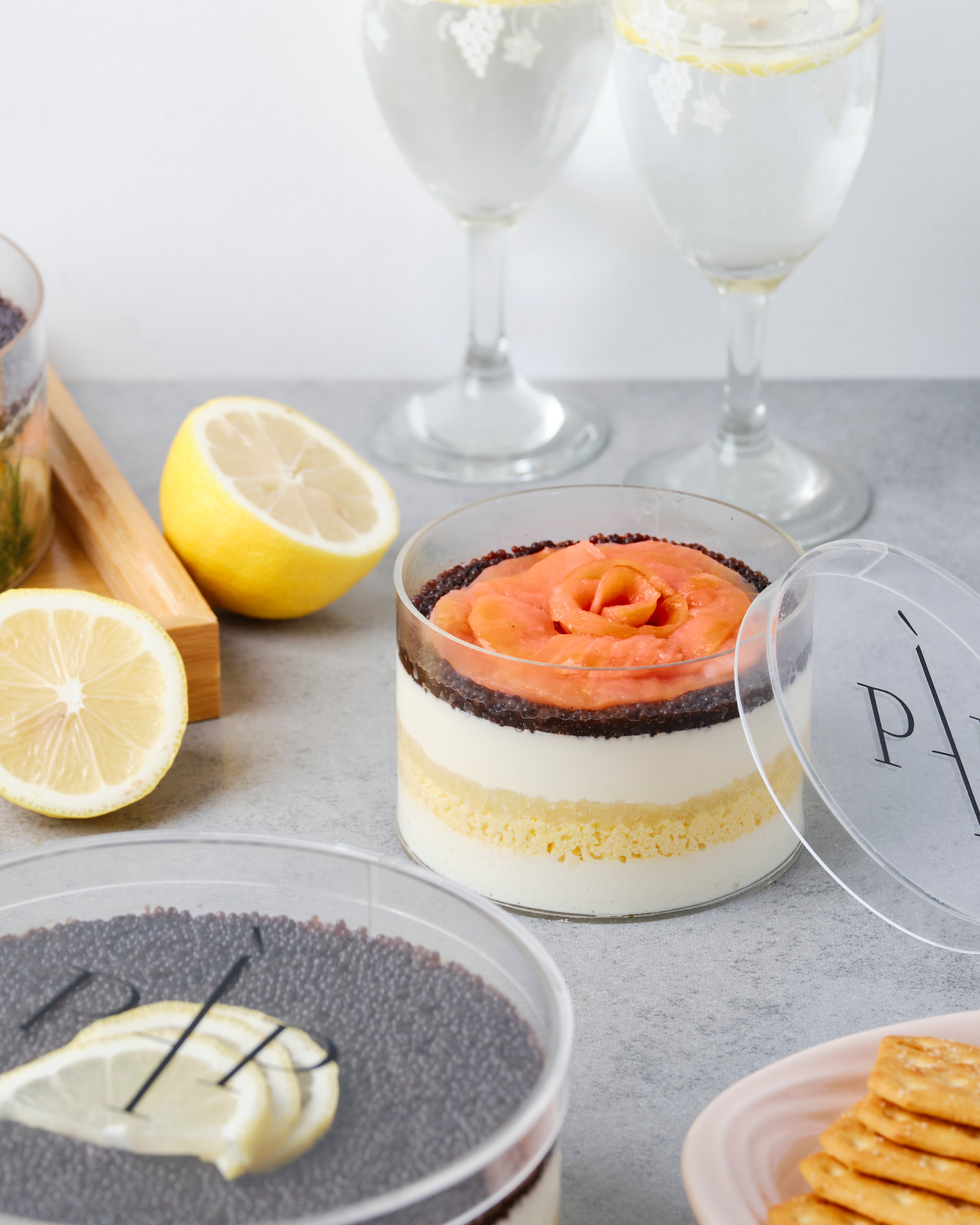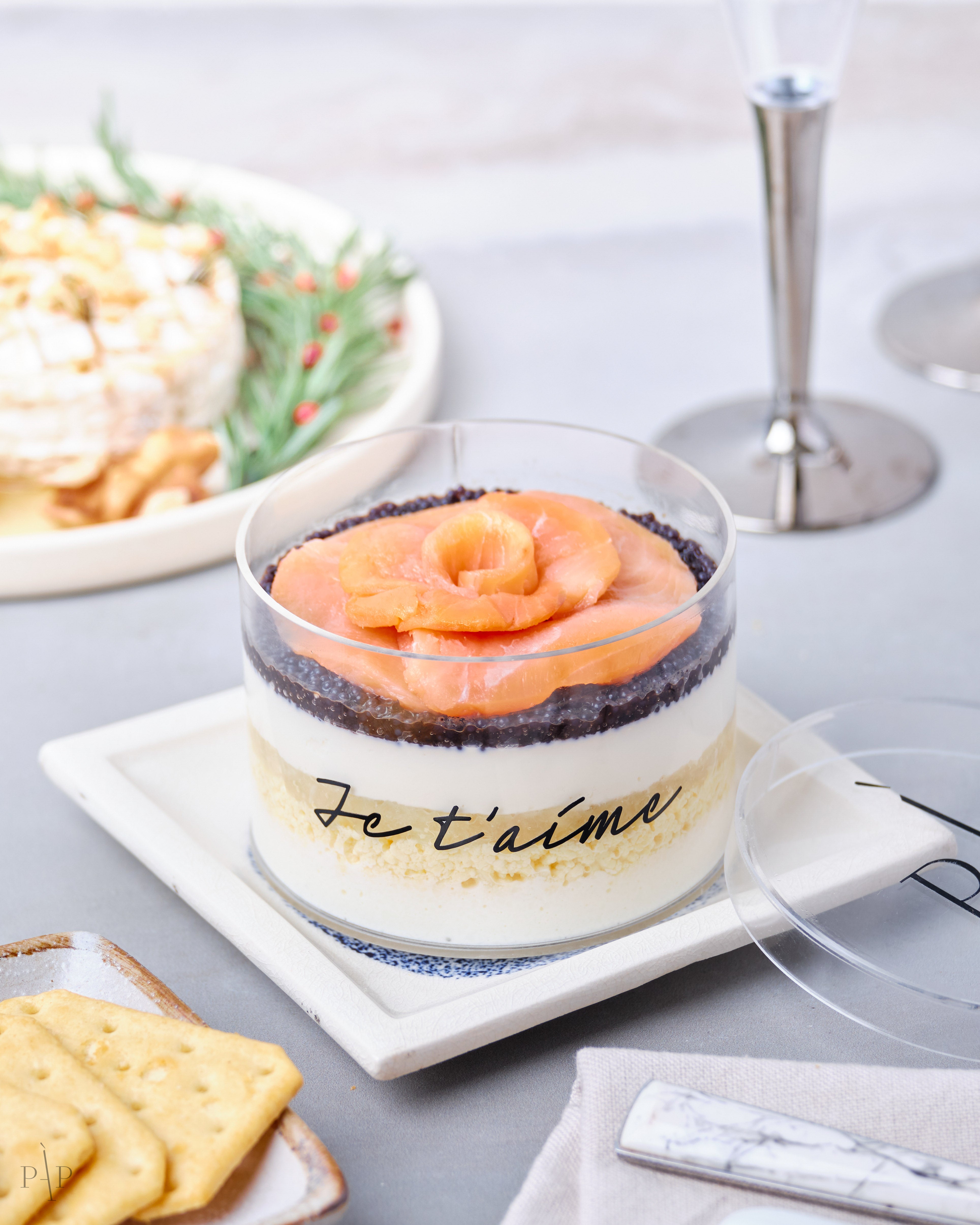 - 1x 5.5” Caviar Pie with Smoked Salmon in Acrylique