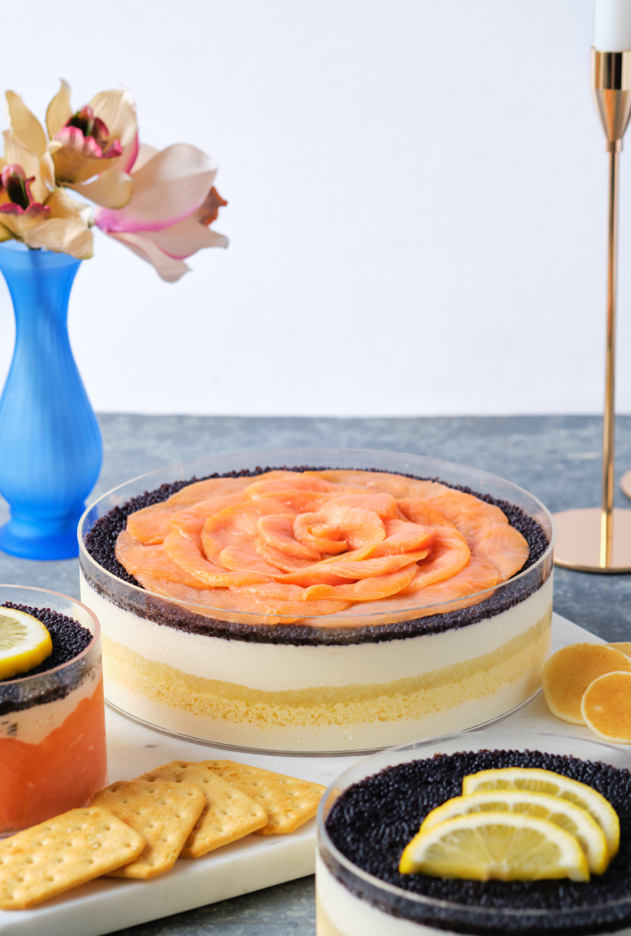 8" Caviar Pie with Smoked Salmon in Acrylique