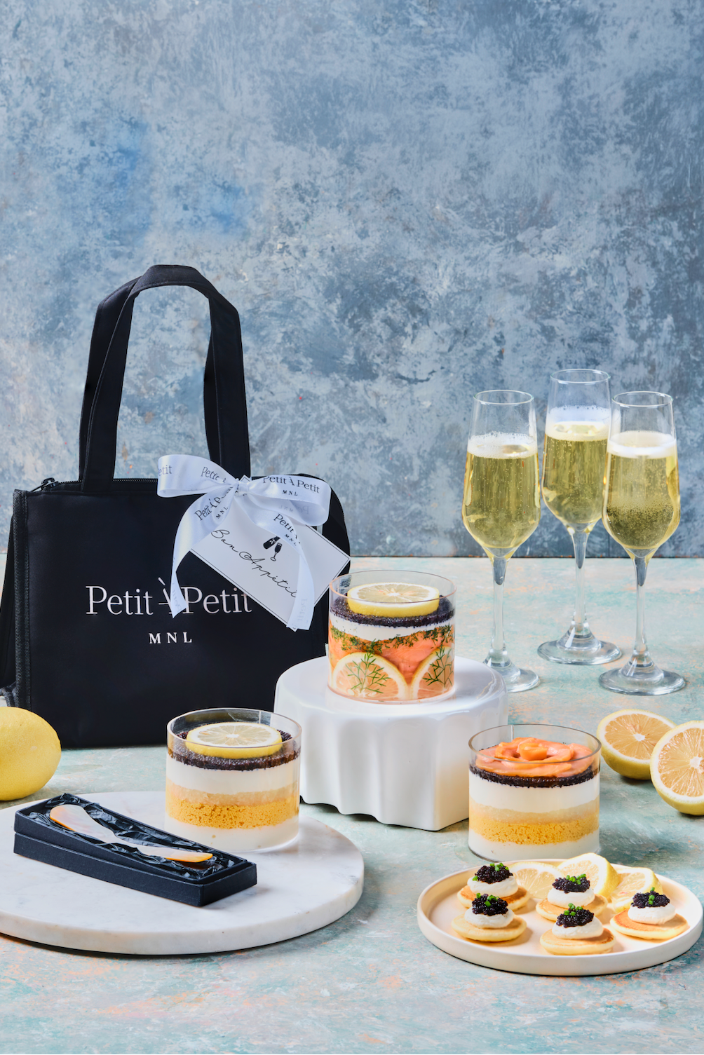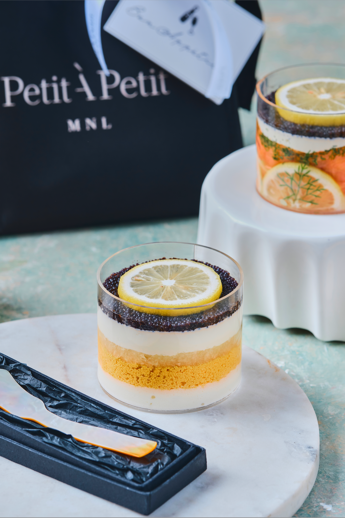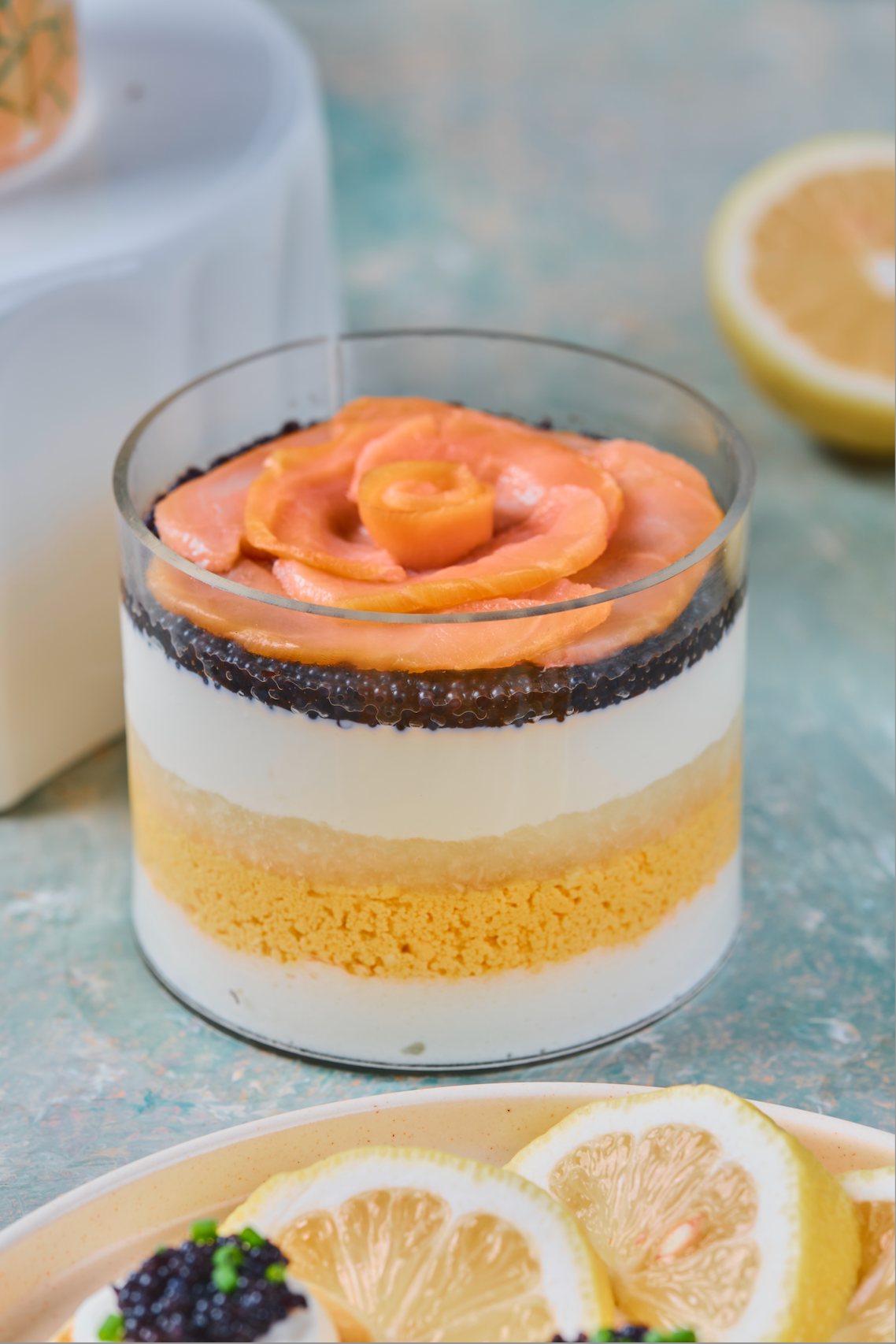 - 1x 3.5” Caviar Pie with Salmon Gravlax in Acrylique