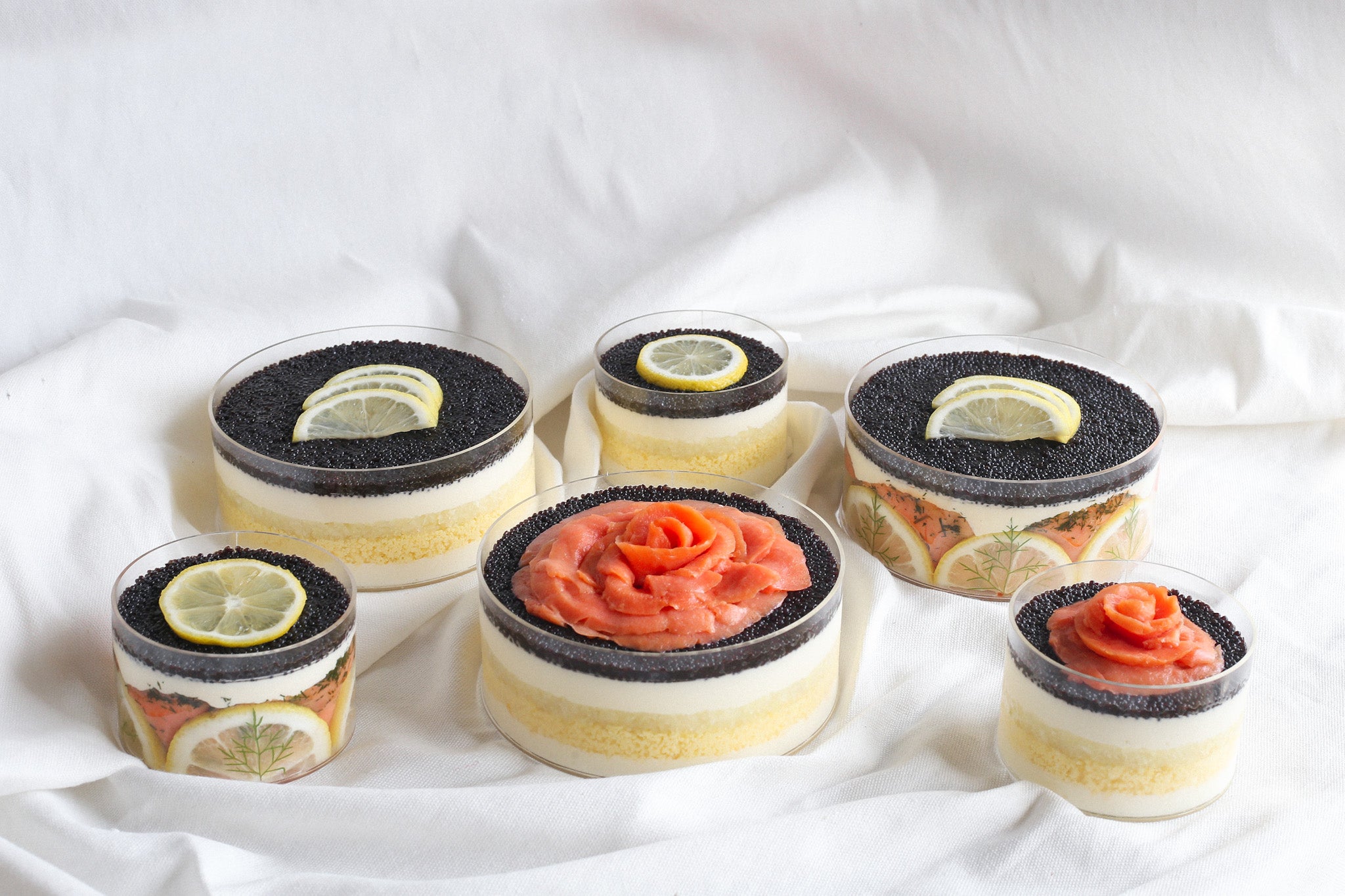 • 1x 3.5” Caviar Pie with Smoked Salmon in Acrylique
