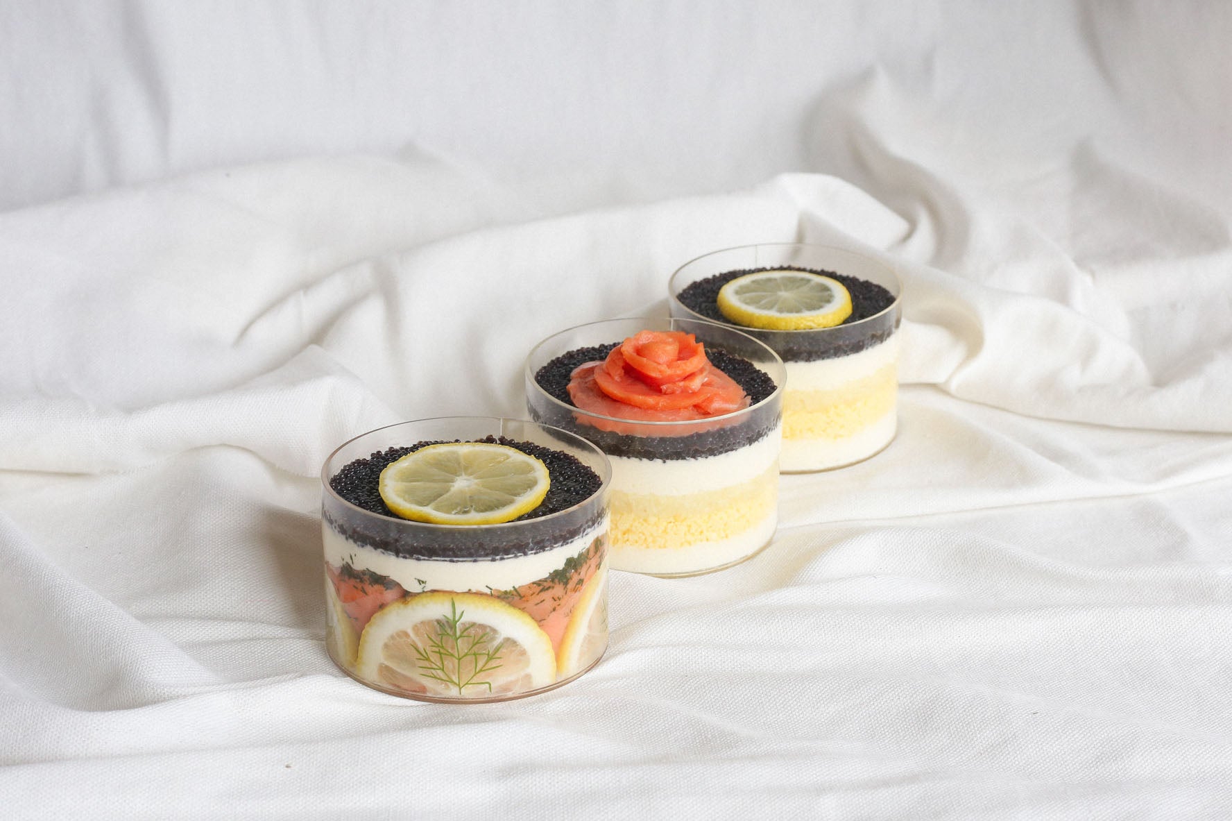 • 1x 3.5” Caviar Pie with Salmon Gravlax in Acrylique