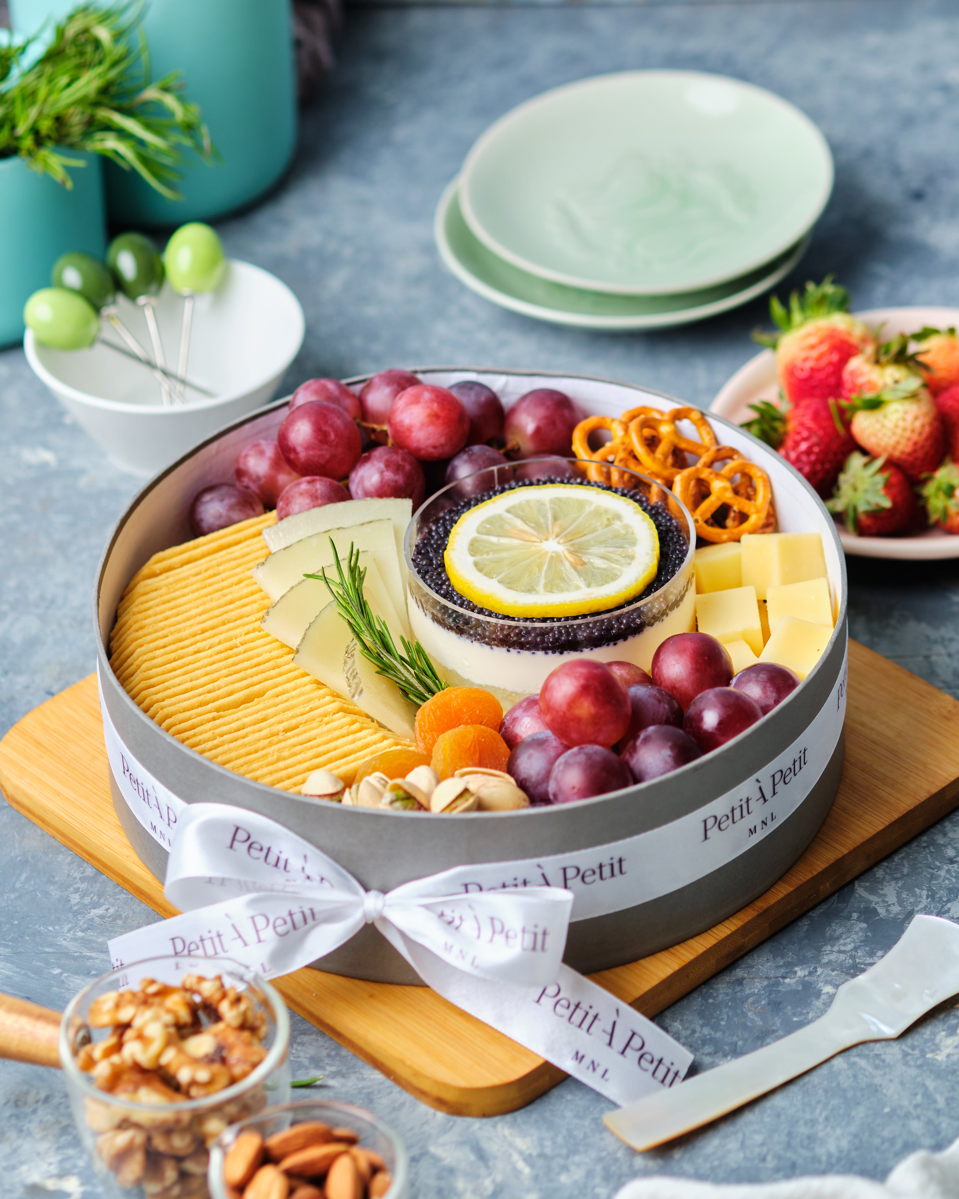 A Caviar Pie in a Graze Box? Oui! It's the most requested order! A combination of our best-selling graze box and Caviar Pie in Acrylique in one box fit for small group sharing.